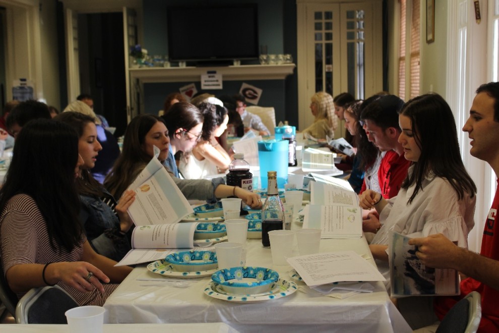 Hillel at UGA had an amazing Passover! The staff engaged with over 110 different individuals between 2 Seders and other Passover programs during the week! On Saturday, Hillel finished it’s Passover programs with a carb fest at Mellow Mushrooms, and handed out bagels and cream cheese Downtown, where 180 students celebrated the end of Passover.